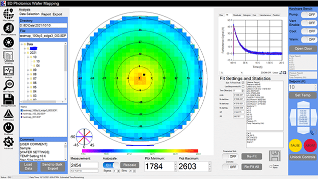 The 8D IR Explorer wafer mapping software runs on a Windows PC we provide with the measurement system. Our software handles all aspects of data acquisition from locating samples to automated PDF based report generation. Built-in scripting control provides flexibility to completely automate your measurements. The 8D IR Explorer software was designed to address both research and production characterization needs.